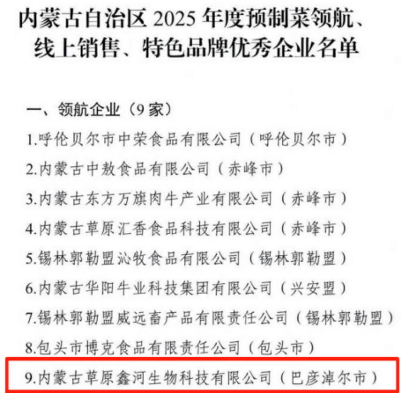 我市1家企业获评2025年度自治区级预制菜领航企业